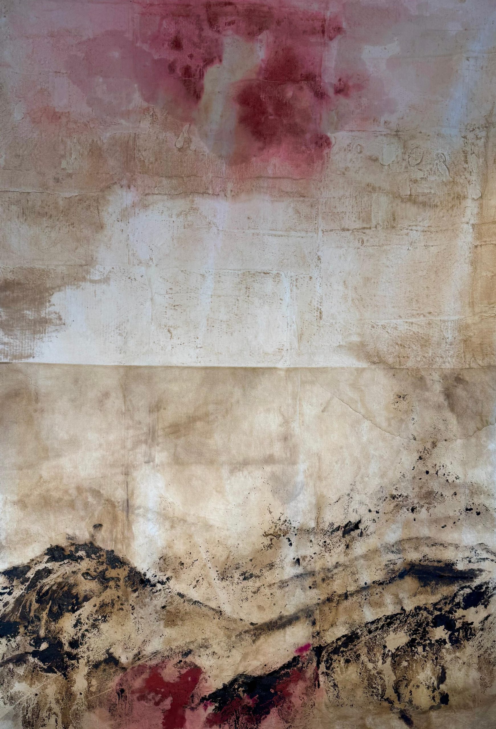 Riccardo Ricca, - Orizzonti-Paesaggio 12, 2025 bitume, smalto su tessuto di cotone non preparato, 200x143 cm